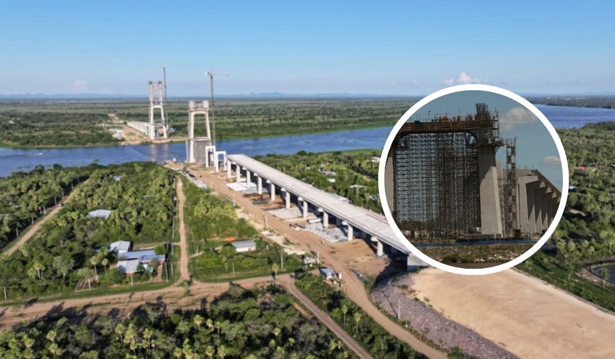 A obra da ponte da Rota Bioceânica, que ligará Porto Murtinho (MS) a Carmelo Peralta (Paraguai), avançou e está em contagem regressiva para a inauguração.