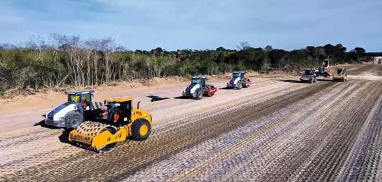 As obras de implantação do acesso à Ponte Internacional Bioceânica, entre os km 678,1 e km 691,2 da BR-267/MS, avançam para a implantação do novo corredor logístico estratégico para a integração do Brasil com o Paraguai, Argentina e Chile.