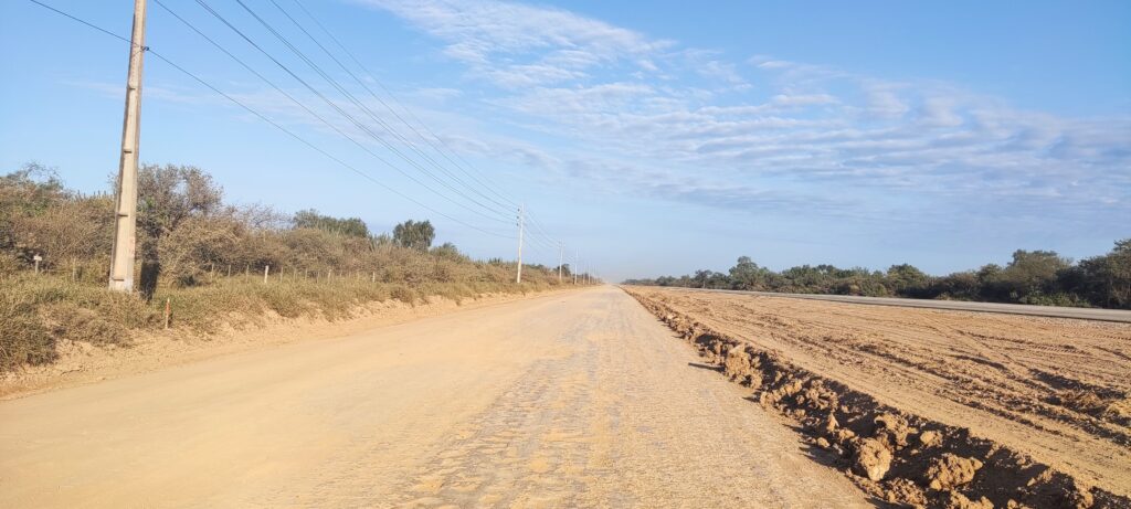 Mariscal Estigarribia (PY) – Na manhã desta quinta-feira (14), a jornalista Letícia Monteiro do Rota Bioceânica News esteve no município paraguaio acompanhando de perto o progresso das obras do Corredor Bioceânico, ao lado dos empresários Guido Kaethler e Oscar Navarro Arriola, representantes das empresas Geochaco e Dadsa – parque logístico e habitacional de Alto Paraguay.