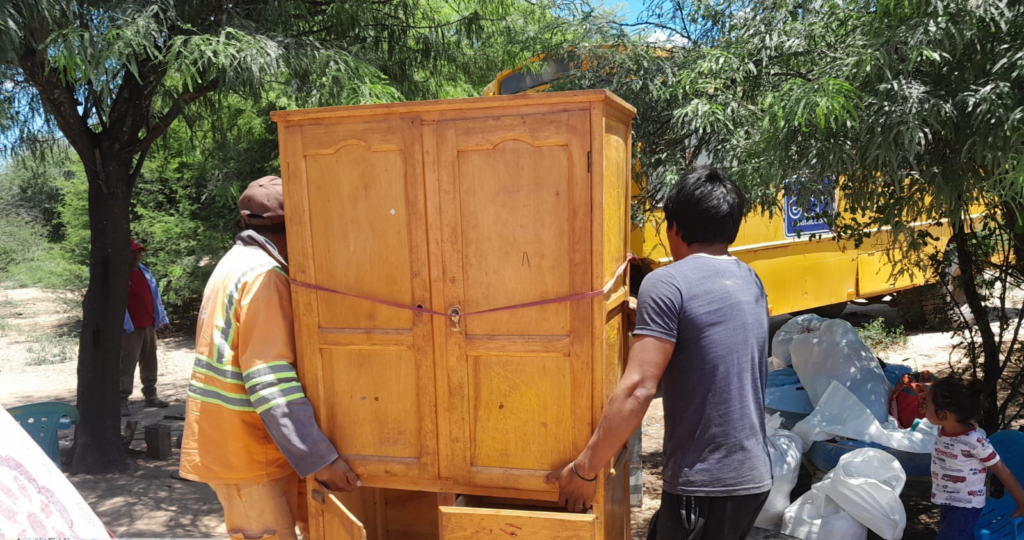 No segundo dia, a demolição e a realocação de 100% das estruturas habitacionais do antigo assentamento foram concluídas. Esse procedimento foi realizado com respeito e cuidado especial, seguindo as orientações dos próprios membros da comunidade.