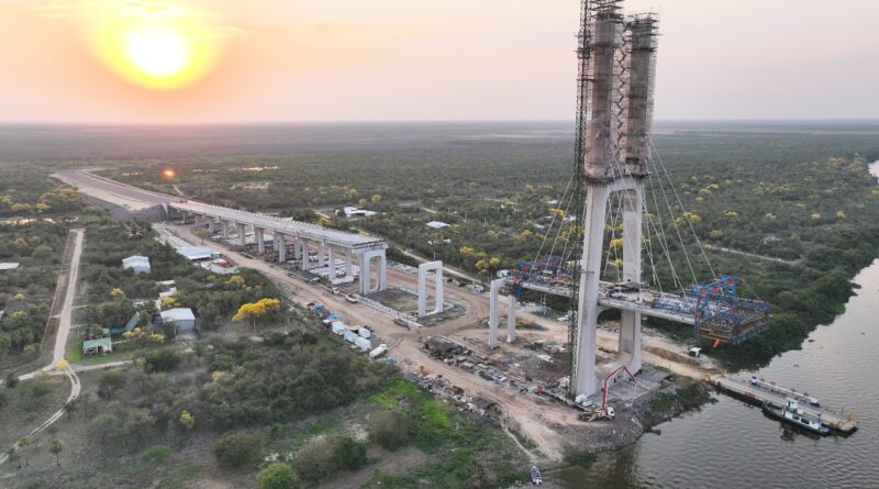 A construção da Ponte Bioceânica está 82,22% concluída em agosto de 2025, de acordo com o último relatório técnico do Ministério de Obras Públicas e Comunicações (MOPC). Esta estrutura, com extensão total de 1.294 metros, ligará Carmelo Peralta (Paraguai) a Porto Murtinho (Brasil).
