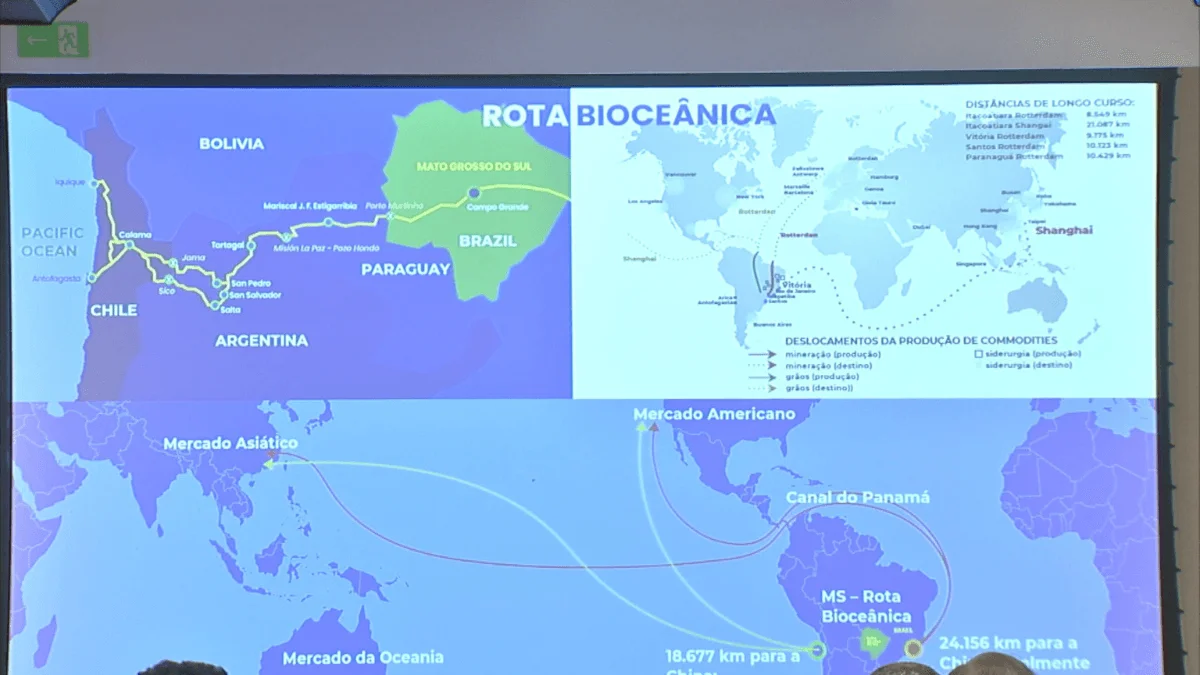 O encontro reuniu empresários, autoridades e investidores. Na palestra, o governador do Mato Grosso do Sul, Eduardo Riedel, afirmou que a Rota Bioceânica irá reduzir custos, abrir mercados e aumentar a competitividade do agronegócio brasileiro.
