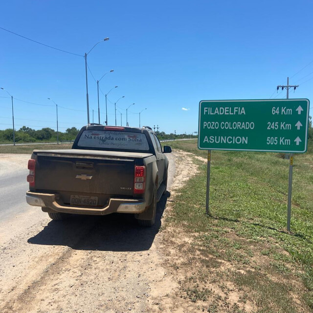 No território paraguaio, as dificuldades continuam. Entre Carmelo Peralta e Filadélfia, são cerca de 280 quilômetros de estrada asfaltada sem qualquer suporte ao viajante, como postos de combustível e borracharias.