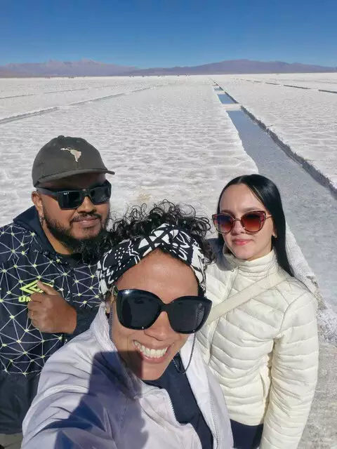 Família em Salinas Grandes, uma das maiores salinas do mundo