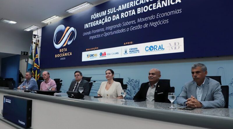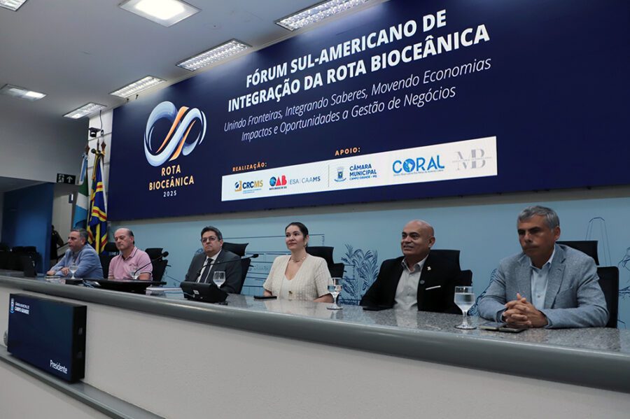 A Câmara Municipal de Campo Grande sediou, nesta quinta-feira (30), a abertura do Fórum Sul-Americano de Integração da Rota Bioceânica, promovido pelo Conselho Regional de Contabilidade de Mato Grosso do Sul (CRCMS), com apoio da OAB/MS e da própria Casa de Leis. O evento segue até esta sexta-feira (31) e reúne autoridades e representantes do Brasil, Paraguai, Argentina e Chile.