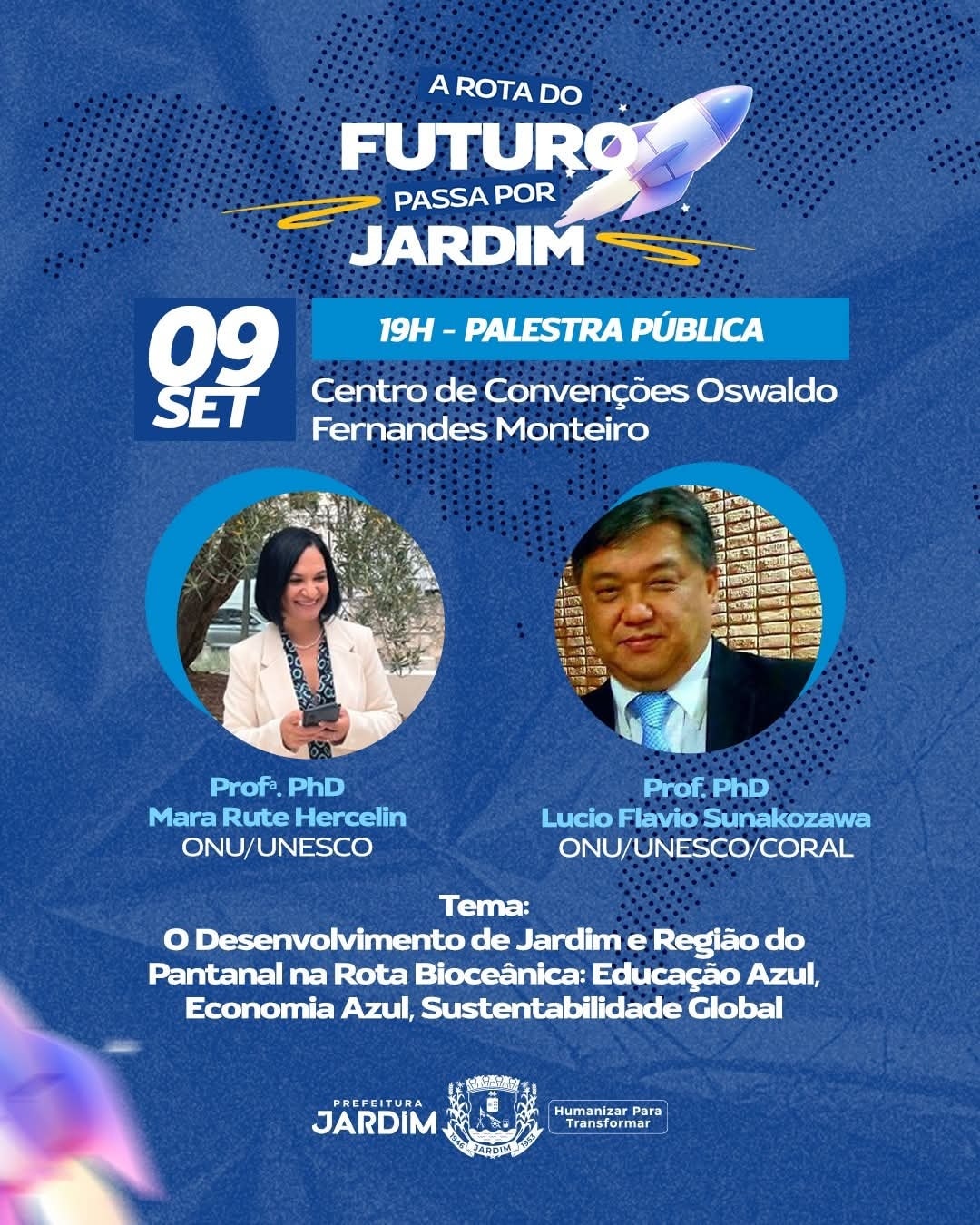 O tema do evento será “O Desenvolvimento de Jardim e Região do Pantanal na Rota Bioceânica: Educação Azul, Economia Azul, Sustentabilidade Global”, destacando o papel estratégico da cidade e do Pantanal Sul-Mato-Grossense na integração econômica que conectará o Brasil ao Oceano Pacífico.