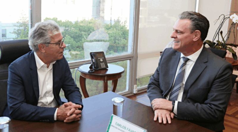 O ministro da Agricultura e Pecuária, Carlos Fávaro, recebeu nesta terça-feira (30) o presidente da Agência Brasileira de Promoção de Exportações e Investimentos (ApexBrasil), Jorge Viana, para tratar da abertura do mercado chileno aos frigoríficos do Acre e Rondônia. A agenda reforça a estratégia do Governo Federal de ampliar as oportunidades comerciais do Brasil, com foco especial na região amazônica.