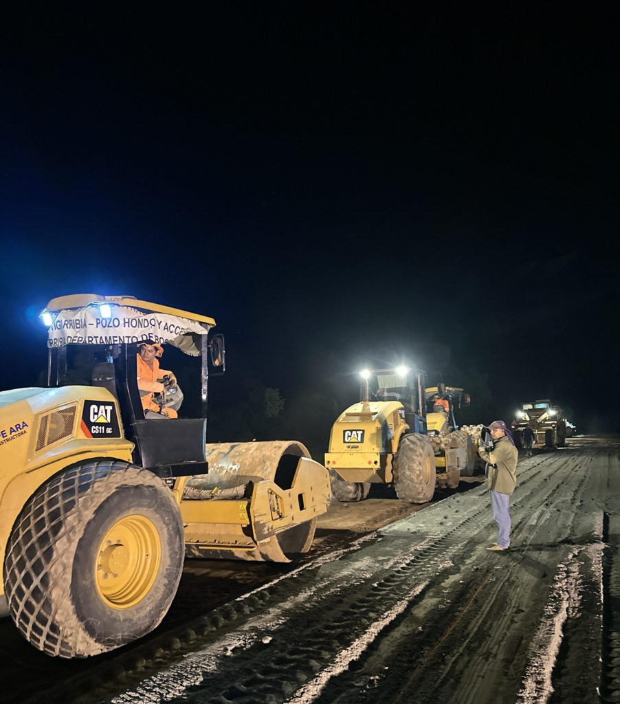 A construção do Lote 3 da Rodovia PY15 – o Corredor Bioceânico – está em andamento no Chaco paraguaio, com trabalho noturno em resposta às altas temperaturas registradas durante o dia. Este trecho está sendo construído pela empresa CDD Construcciones e faz parte do terceiro segmento do projeto rodoviário que liga Mariscal Estigarribia a Pozo Hondo.
