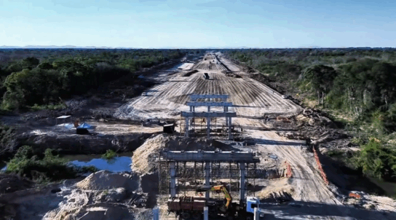 A obra da alça de acesso à ponte da Rota Bioceânica, orçada em aproximadamente R$ 472 milhões, compreende um trecho de 13,1 quilômetros de rodovia para interligar a BR-267 à ponte sobre o rio em Porto Murtinho, teve um avanço de 30% na execução dos trabalhos.