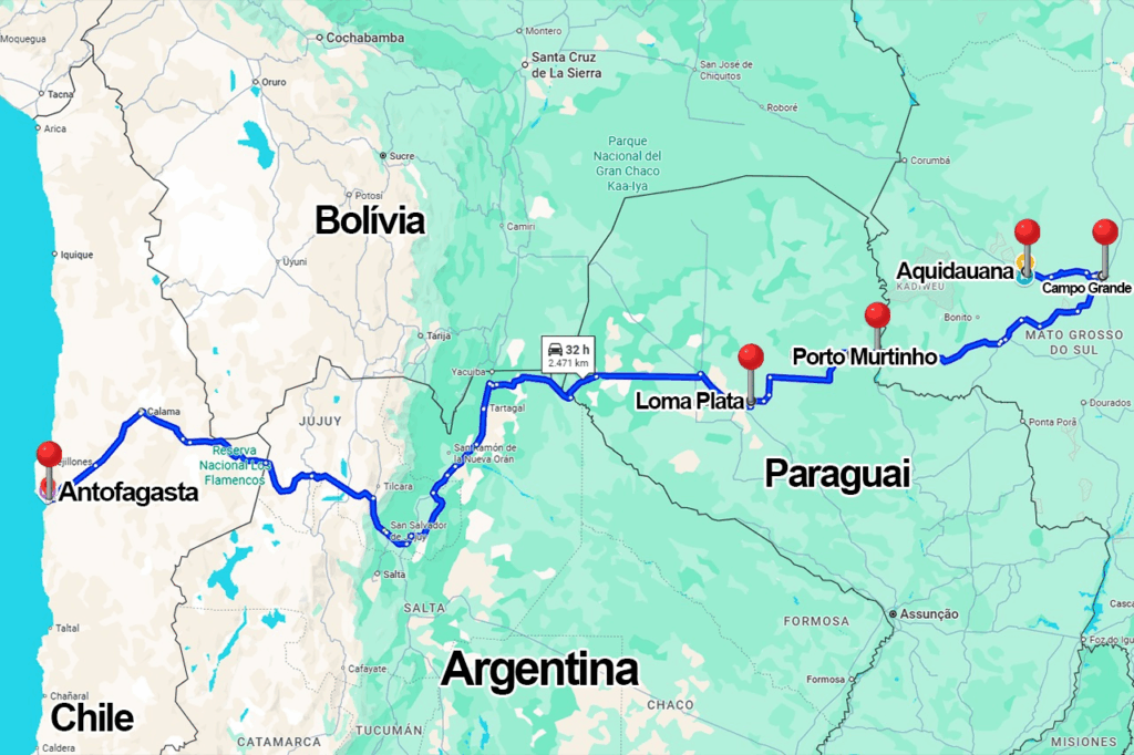 Na maior parte da viagem, estarão na Rota Bioceânica e vão cruzar por, no mínimo, três países: Paraguai, Argentina e Chile. São mais de dois mil e quinhentos quilômetros na estrada, num misto de aventura e trabalho.