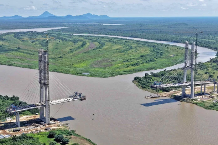 A Ponte Bioceânica, que ligará Porto Murtinho (Brasil) a Carmelo Peralta (Paraguai), tem previsão de conclusão em 2026. A nova ligação fronteiriça integrará Brasil, Paraguai, Argentina e Chile, permitindo o escoamento de mercadorias brasileiras até os portos chilenos no Pacífico com menor tempo e custo logístico, ampliando o acesso do país ao mercado asiático.