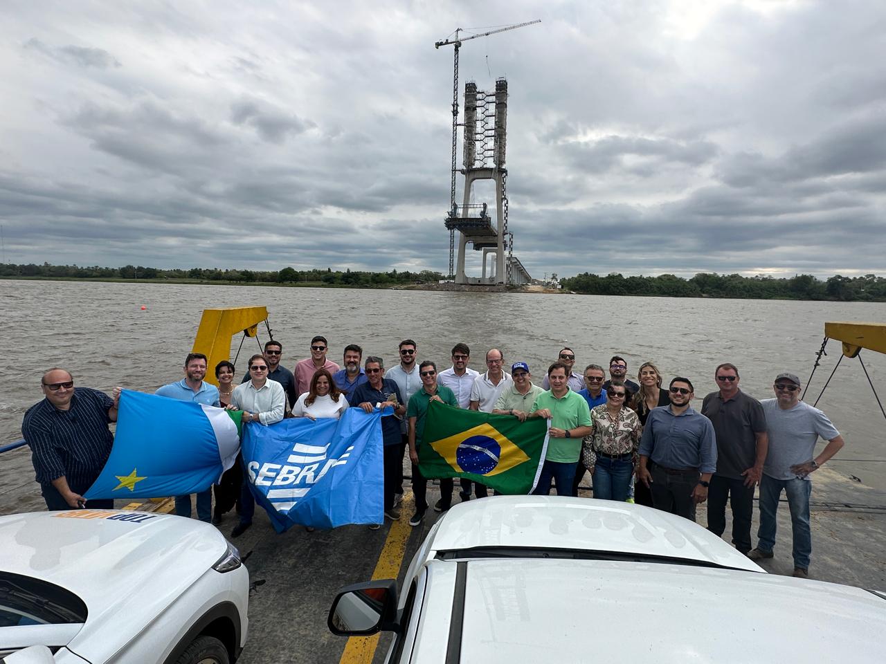 Formado por 14 veículos, o grupo iniciou o percurso acompanhando de perto as obras da ponte sobre o Rio Paraguai, que conectará o município brasileiro à cidade de Carmelo Peralta, no Paraguai/crédito: Divulgação Sebrae/MS