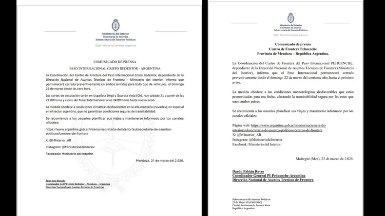 Por meio de um comunicado oficial emitido pela Coordenação do Centro de Fronteiras Pehuenche , foi informado que, a partir deste domingo, 22 de março, a passagem localizada em Malargüe permanecerá fechada para todos os tipos de veículos.